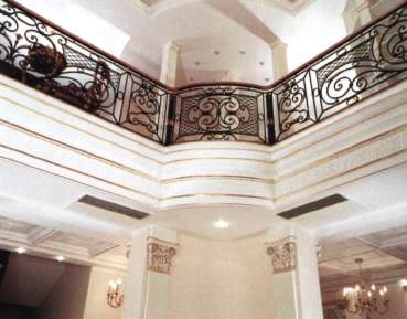 Создавая классический интерьер, невозможно обойтись двумя-тремя отдельными элементами. Необходима связка — единообразная мелкая проработка деталей, связывающая отдельные "ударные" моменты в общее художественное пространство, включающее и потолок, и колонны, и двери, и арочные проемы. Так на сцену выходит позолота. Она же придает и истинный блеск интерьеру.