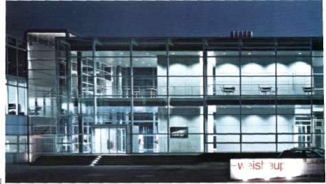 1. Административное здание компании "Weishaupt AG", Герольдсвилл, Швейцария. Один из ярких примеров создания световых витрин для деловых центров в ночное время. Основные световые эффекты созданы пятнами от даунлайтов, рассеяных на боковых поверхностях стен. Объект выполнен компанией Zumtobel Staff (Германия), (фото Gunter Laznia)